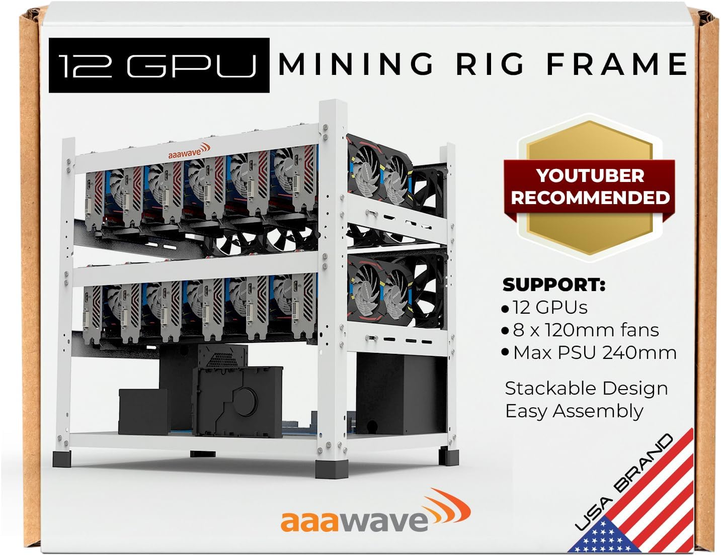 12GPU Mining Rig – The Sluice V2 Steel Open Frame Case, Stackable Chassis for Crypto Coin Currency & AI Machine Learning Applications – White