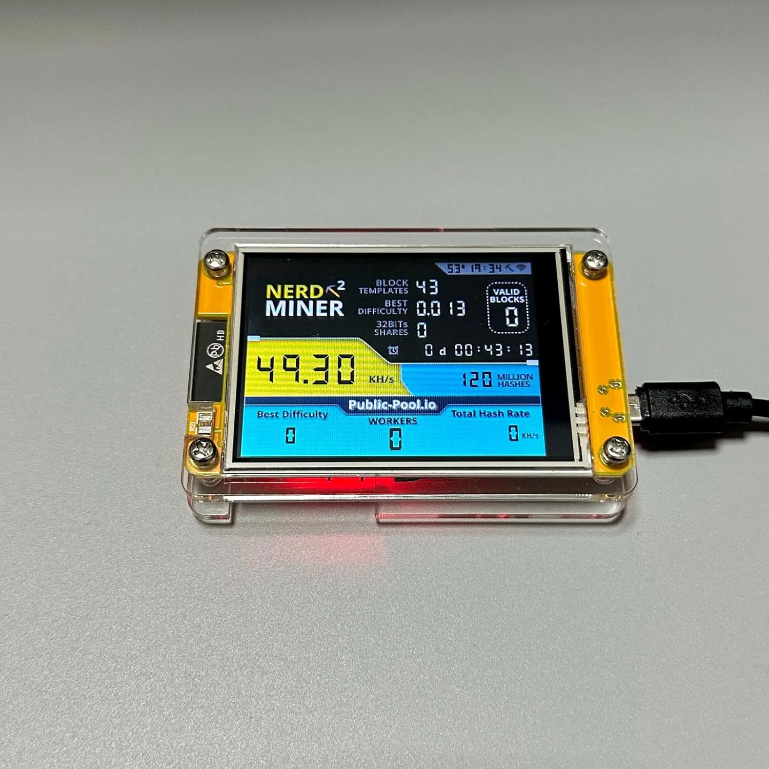 【Powered by ESP32-2432S028】Equipped with the popular ESP32-2432S028 development board, offering dual-core performance, WiFi connectivity, stable operation, and excellent compatibility with open-source NerdMiner firmware.
