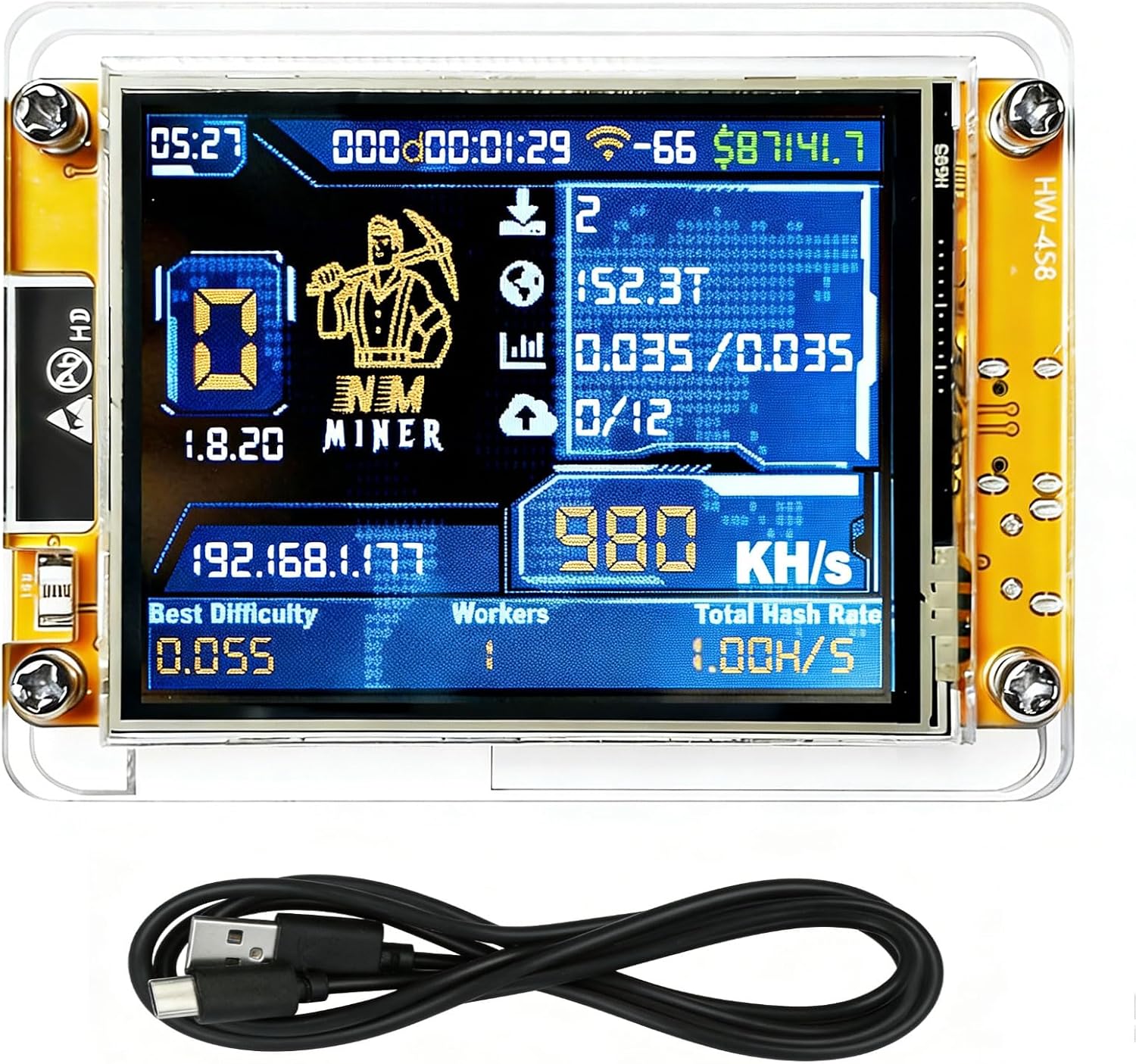 Ideal for solo lottery mining and flexible pool mining modes. This bitcoin miner machine is powered by ESP32-WROOM-32 (Wi-Fi support),with no external computer required for operation