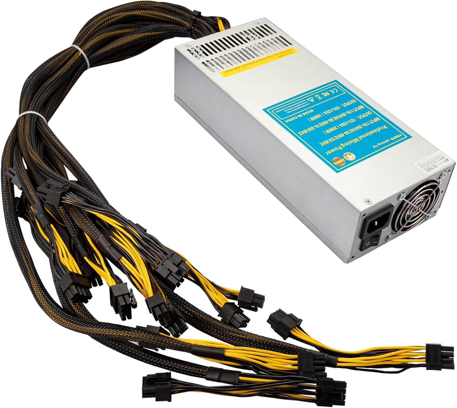1.Rated Power 2000W: High power mining PSU with 8(6+2)Pin connection cords 12V output , work under full voltage (110V -264V ). Hight efficiency with more than 80 %. Please reasonably calculate the consumption of the GPUs and reserve 300-400W for the motherboard and other cables.